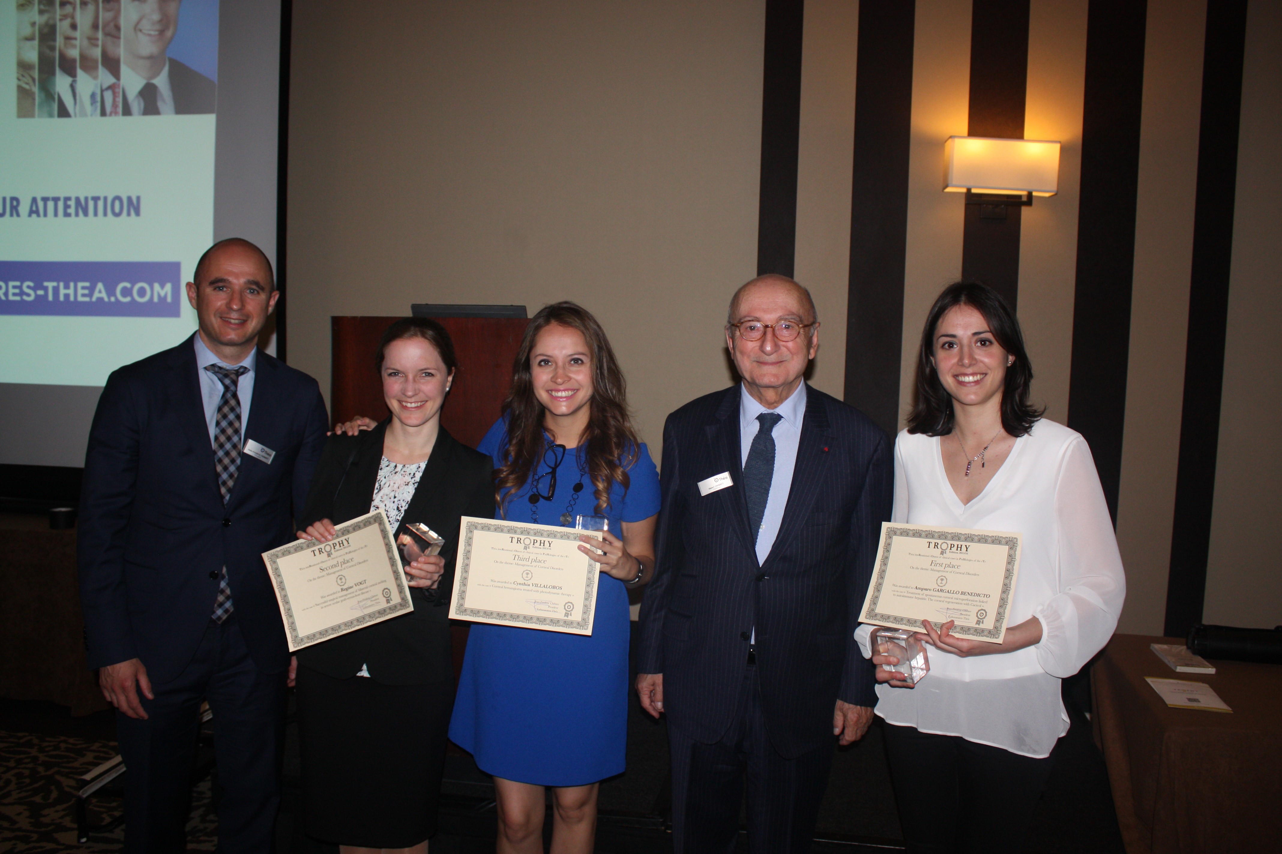 The Théa inteRnational cOntest of clinical cases in PatHologies of the eYe (TROPHY) is designed to encourage presentation and communication skills of residents and fellows in ophthalmology. Thanks to TROPHY, several young ophthalmologists had or will have the chance to present their work during the Théa symposium held during each ARVO annual meeting.